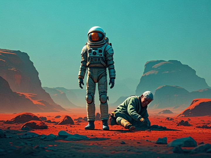 “我”,作为第二批火星勘测小队的成员,站在飞船舱内,心中五味杂陈。